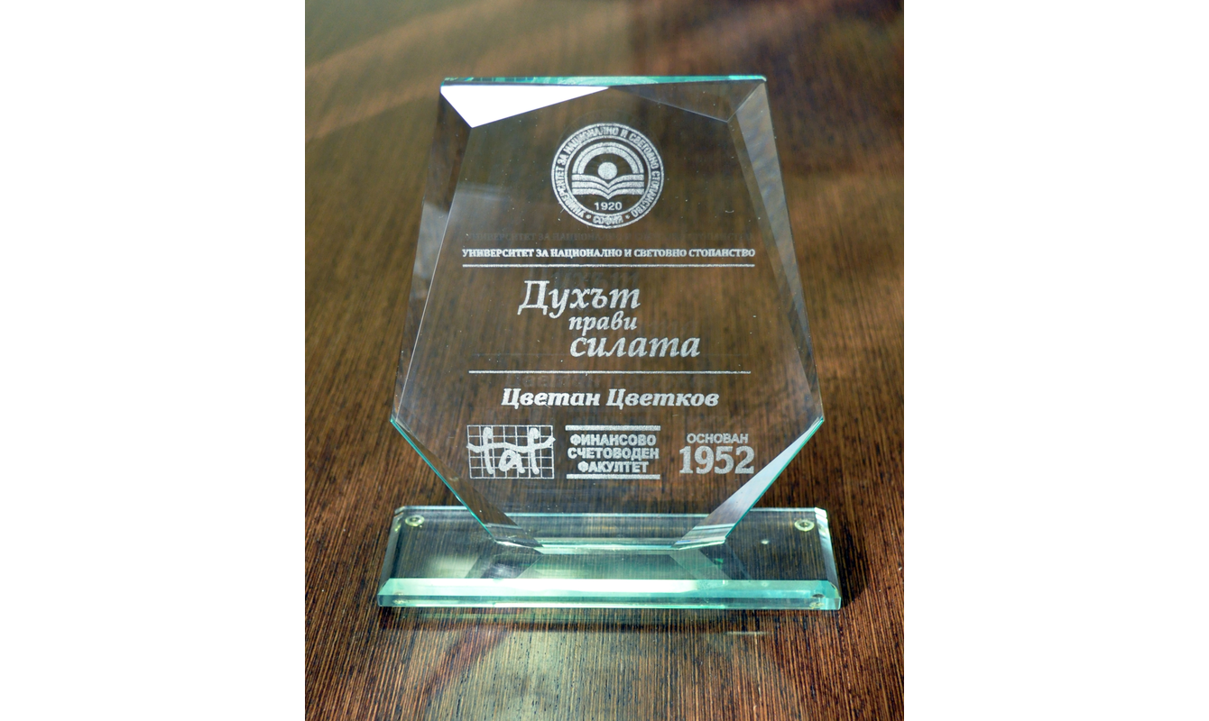 Председателят на Сметната палата Цветан Цветков бе награден с почетен плакет на Финансово- счетоводния факултет на УНСС за съпричастност към обучението и работата с университета. Плакетът му бе връчен от декана на факултета проф. д-р Румен Брусарски.