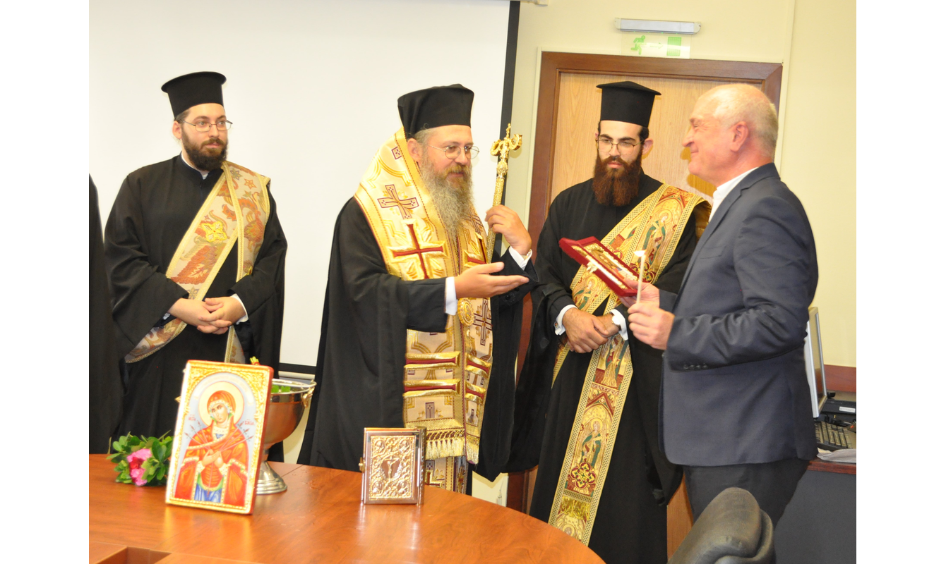 After that, a blessing with Holy water was held for the good health, well-being and successful work of all BNAO employees. His Eminence Bishop Polycarp of Belogradchik, vicar of the Bulgarian Patriarch Neophyte, blessed those present and, on behalf of His Holiness, presented Mr. Glavchev with a diptych with icons of Jesus Christ and Mary, Holy Mother of Jesus Christ. The new President also received an icon of the Holy Mother of God of the Seven Arrows from the entire BNAO team.